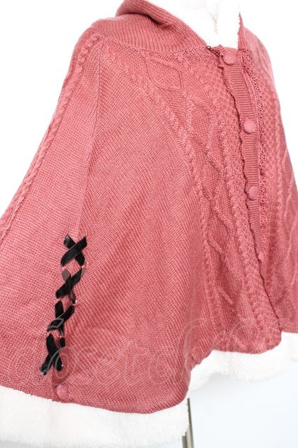 axes femme / 編み上げ裏ボアニットポンチョ ピンク Y-25-12-13-132-AX-CO-SZ-ZY [2100070000031820-Y-25-12-13-132-AX-CO-SZ-ZY]