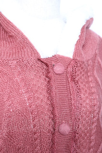 axes femme / 編み上げ裏ボアニットポンチョ ピンク Y-25-12-13-132-AX-CO-SZ-ZY
