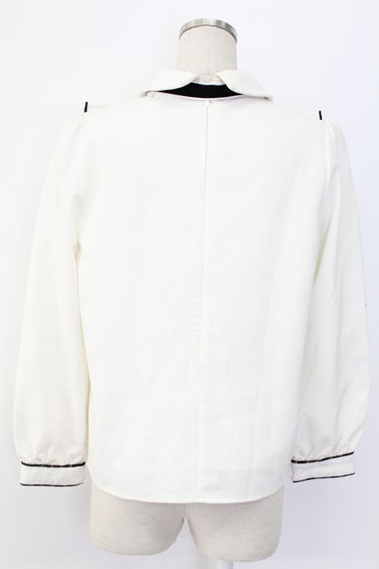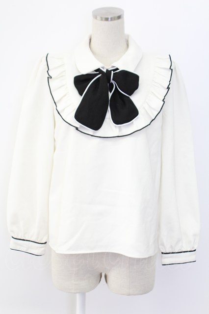 evelyn / Uフリルバイカラーリボンブラウス ホワイト T-25-12-14-001-LO-BL-SA-ZT