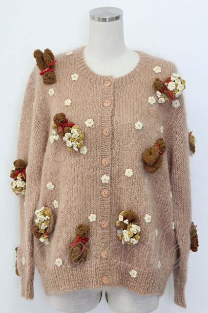 PINK HOUSE / カゴ入り編みぐるみクマ付きモヘアカーディガン ピンク T-25-12-14-006-LO-TO-SA-ZT