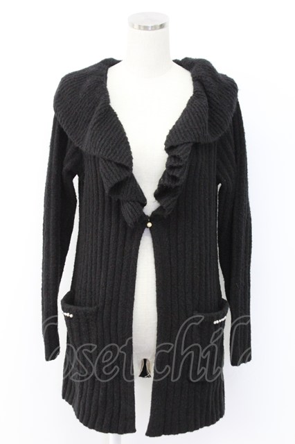 axes femme / リブ編みガウン風カーディガン 黒 T-25-12-14-015-AX-TO-SA-ZT