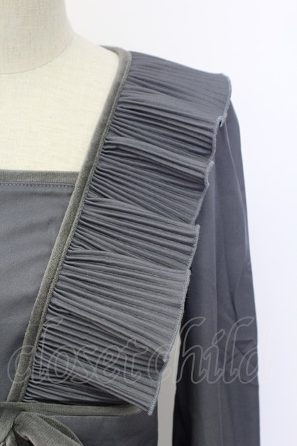 melume / makiコラボ/プリーツ襟ワンピース L グレー T-25-12-14-020-0-OP-SA-ZT