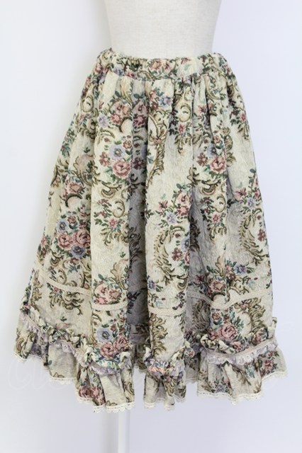 PrivateSquare. / 小花ブーケ柄ゴブランロングスカート M ベージュ T-25-12-14-032-LO-SK-SA-ZT