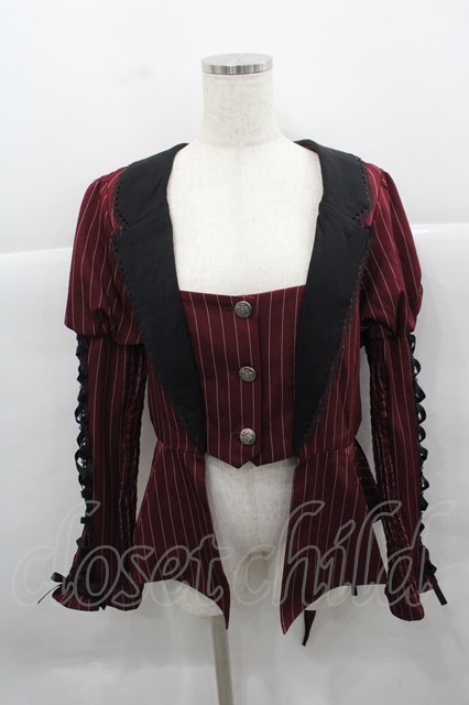 Chalmiere / ストライプレースアップジャケット M ワイン I-25-12-13-056-LO-JA-SA-ZI [2100060000047620-I-25-12-13-056-LO-JA-SA-ZI]