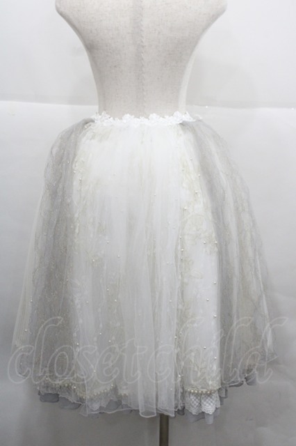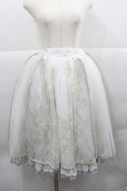 NINEODES(海外ロリィタ) / チュール&パール重ねボリュームスカート 白XシルバーXゴールド I-25-12-13-066-LO-SK-SA-ZI [2100060000044529-I-25-12-13-066-LO-SK-SA-ZI]