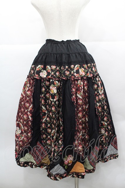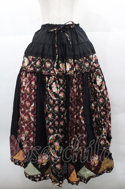 PINK HOUSE / エターナルローズパッチワークスカート 黒 I-25-12-13-068-LO-SK-SA-ZI [2100060000027193-I-25-12-13-068-LO-SK-SA-ZI]