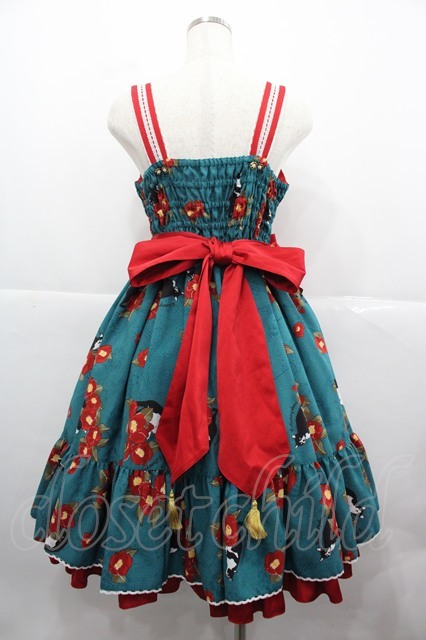 metamorphose / 椿爛漫〜ねこのかくれんぼ〜 フリルジャンパースカート 碧緑色 I-25-12-13-095-ME-OP-SA-ZI [2100060000047309-I-25-12-13-095-ME-OP-SA-ZI]