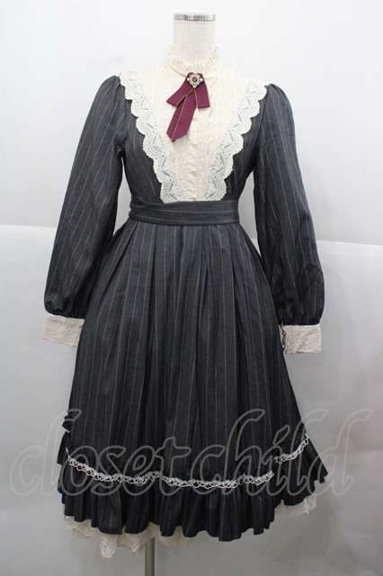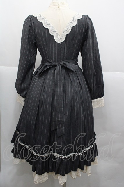 MISS POINT(海外ロリータブランド) / ストライプ長袖ワンピース グレーX白 I-25-12-13-099-LO-OP-SA-ZI [2100060000044380-I-25-12-13-099-LO-OP-SA-ZI]