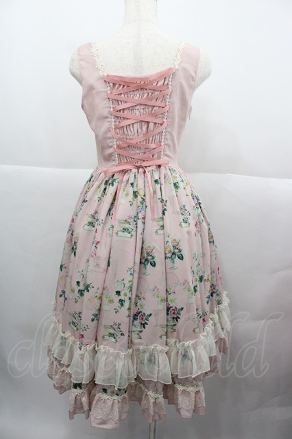 MISS POINT(海外ロリータブランド) / フラワー花瓶柄ジャンパースカート S ピンク I-25-12-13-106-LO-OP-SA-ZI