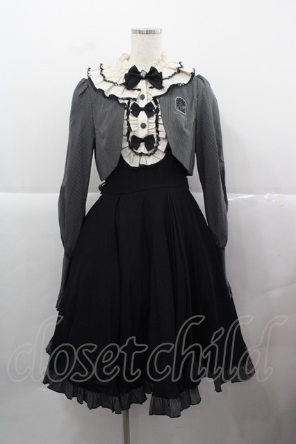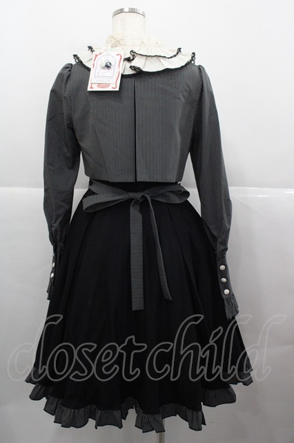仲夏物語 / ストライプボレロ重ね風ワンピース M 黒Xグレー I-25-12-13-107-EL-OP-SA-ZI