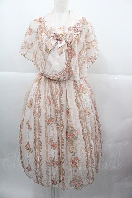 小熊星球(海外ロリータブランド) / 薔薇縦柄ジャンパースカート&ケープセット M ピンク I-25-12-13-115-LO-OP-SA-ZI