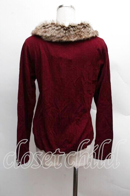 axes femme / 袖刺繍ファーティペ付きカーディガン ワイン S-25-12-13-019-AX-TO-HR-ZS [2100020000028937-S-25-12-13-019-AX-TO-HR-ZS]