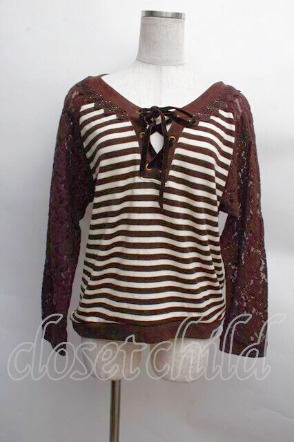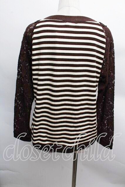 axes femme / 異素材組み合わせボーダープルオーバー 茶 S-25-12-13-023-AX-TO-HR-ZS