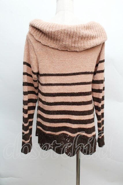 axes femme / オフショルボーダーニット ピンクxブラウン S-25-12-13-030-AX-TO-HR-ZS [2100020000028911-S-25-12-13-030-AX-TO-HR-ZS]