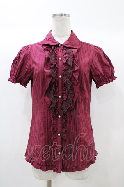 axes femme / レジメンタルストライプブラウス M ワイン H-25-12-21-1054-AX-BL-NS-ZH [2100030000081147-H-25-12-21-1054-AX-BL-NS-ZH]