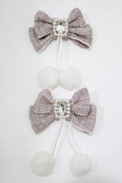 NOEMIE / ツイードリボンぽんぽんツインテールクリップ ピンク H-25-12-20-068-LO-AC-NS-ZH