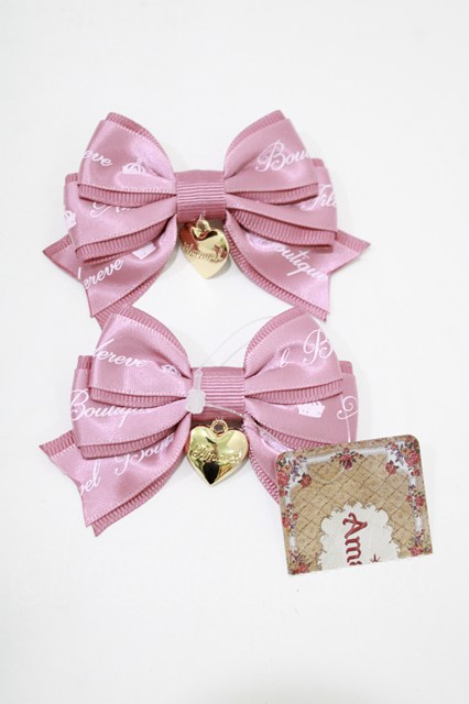 Amavel / ハートチャーム付ダブルリボンミニクリップ ピンク H-25-12-20-065-CA-AC-NS-ZH