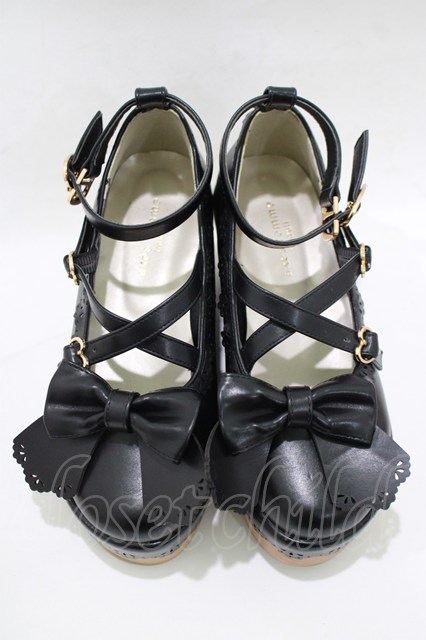 axes femme kawaii / スカラップ木底風シューズ S(22.5cm) ブラック H-25-12-20-080-AX-SH-NS-ZH [2100030000081050-H-25-12-20-080-AX-SH-NS-ZH]