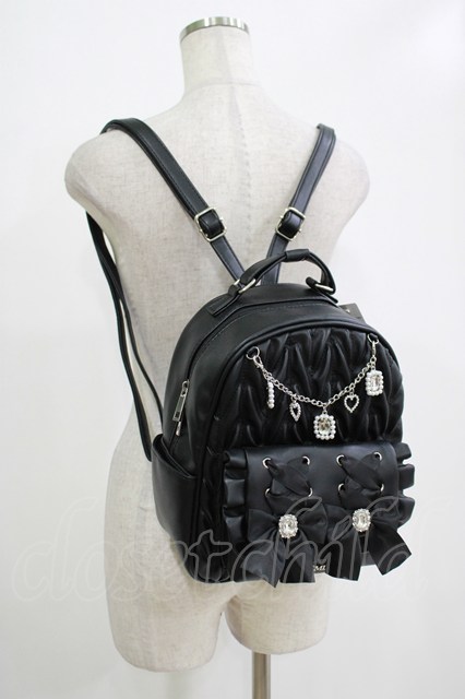 NOEMIE / チェーン付きキルティングリュック ブラック H-25-12-20-051-LO-BG-NS-ZH