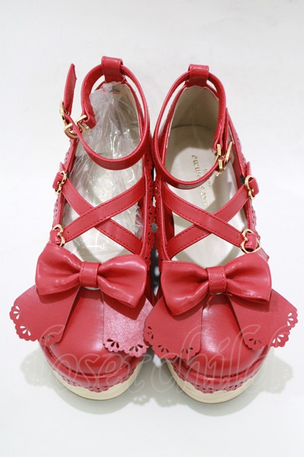 axes femme kawaii / スカラップ木底風シューズ S(22.5cm) レッド H-25-12-20-078-AX-SH-NS-ZH [2100030000081057-H-25-12-20-078-AX-SH-NS-ZH]