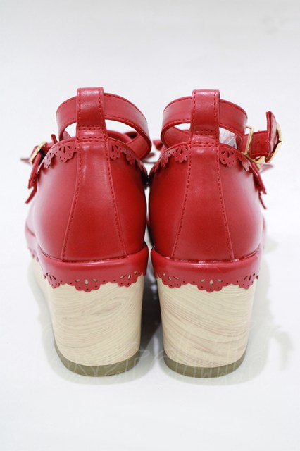 axes femme kawaii / スカラップ木底風シューズ S(22.5cm) レッド H-25-12-20-078-AX-SH-NS-ZH