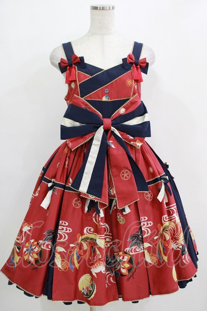 metamorphose / 乙女の白昼夢タックジャンパースカート Free 赤系 H-25-12-20-006-ME-OP-NS-ZH