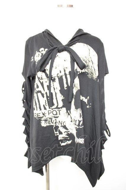 SEX POT ReVeNGe / 袖クラッシュptカットソー 黒×白 Y-25-12-17-025-SP-TO-SZ-ZY [2100070000056442-Y-25-12-17-025-SP-TO-SZ-ZY]