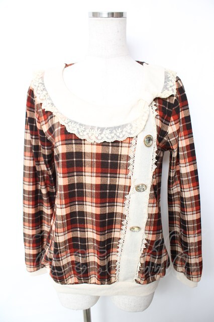 axes femme / 襟リボンデザインチェックニットソー ブラウン Y-25-12-17-064-AX-TO-SZ-ZY