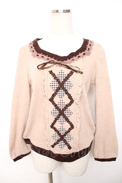 axes femme / パッチワークアーガイルプルオーバー ピンク Y-25-12-17-065-AX-TO-SZ-ZY