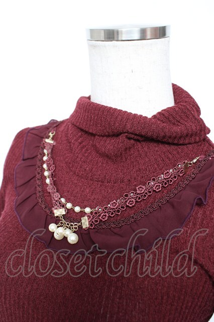 axes femme / ネックレス付ハイネックリブニット ワイン Y-25-12-17-066-AX-TO-SZ-ZY [2100070000056566-Y-25-12-17-066-AX-TO-SZ-ZY]