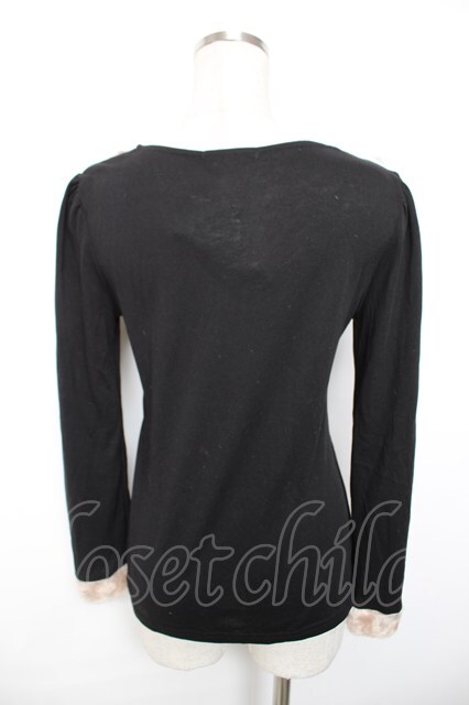 axes femme / リボン付きファー襟プルオーバー 黒 Y-25-12-17-070-AX-TO-SZ-ZY