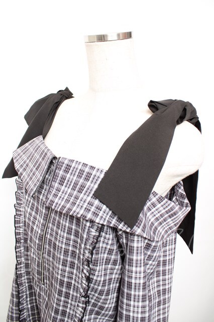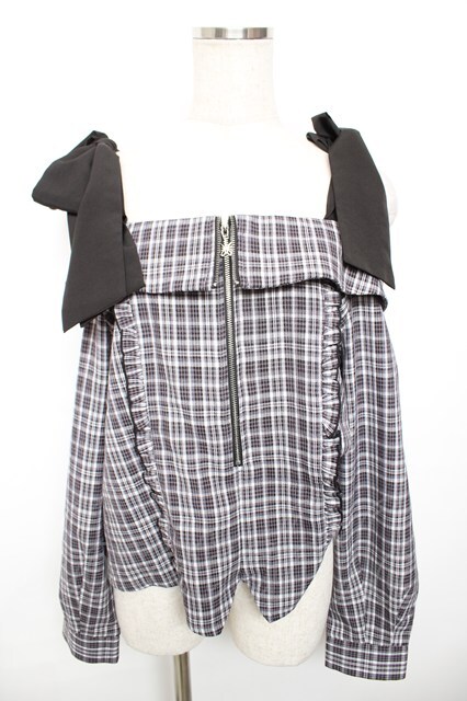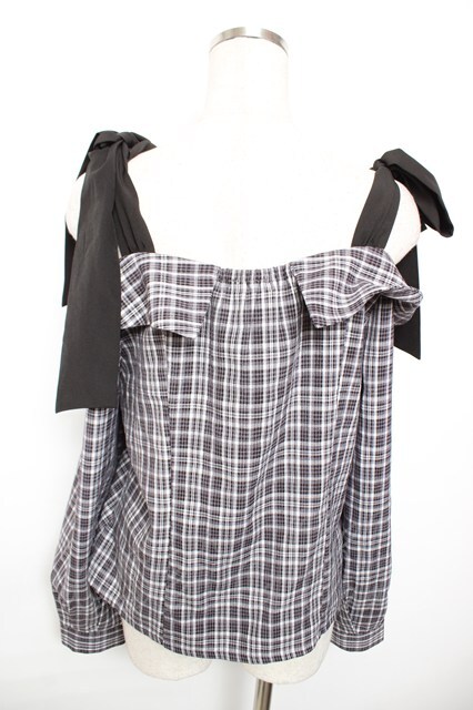 axes femme / チェックオフショルリボンプルオーバー F 黒 Y-25-12-17-073-AX-TO-SZ-ZY