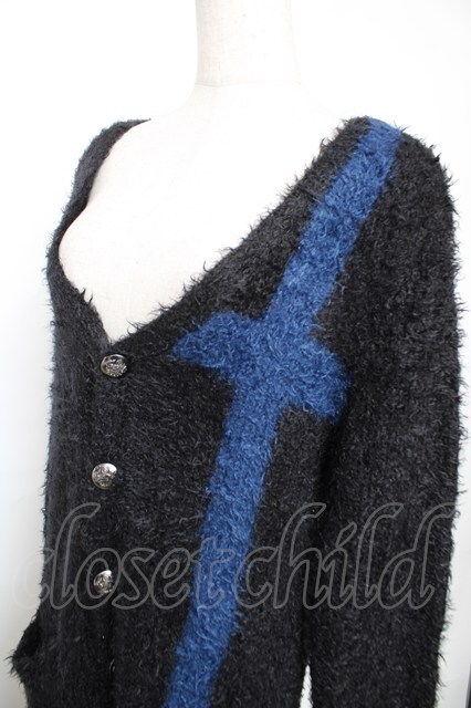 PUTUMAYO / クロスシャギーニットカーディガン 黒×青 Y-25-12-17-081-PT-TO-SZ-ZY [2100070000056405-Y-25-12-17-081-PT-TO-SZ-ZY]