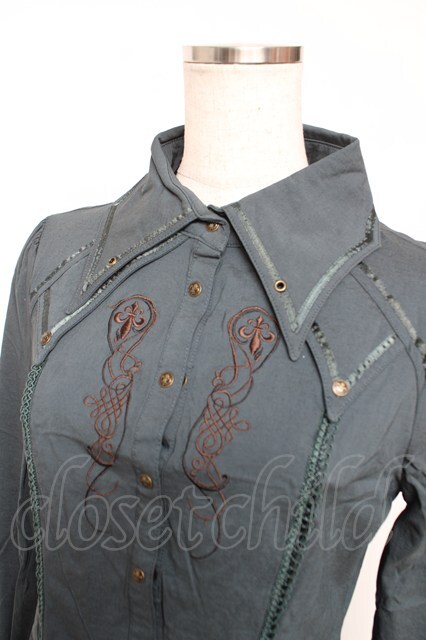 Rozen Kavalier / 刺繍入りレース切替ブラウス グリーン Y-25-12-17-083-OO-BL-SZ-ZY