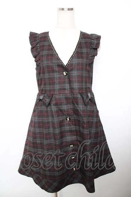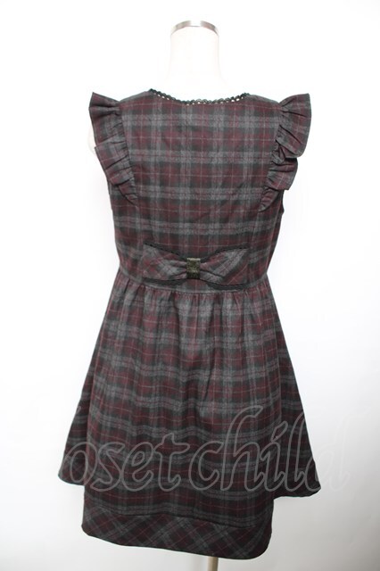 axes femme / チェック柄リボンジャンドレ 黒 Y-25-12-17-102-AX-OP-SZ-ZY
