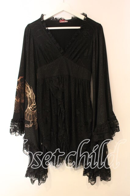 Qutie Frash / 蜘蛛メッシュ振袖ワンピース ブラック O-25-12-15-082-QU-OP-OW-OS