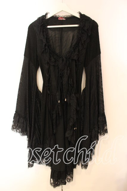 Qutie Frash / レースフリル着物カーデ ブラック O-25-12-15-081-QU-TO-OW-OS [2100080000067952-O-25-12-15-081-QU-TO-OW-OS]