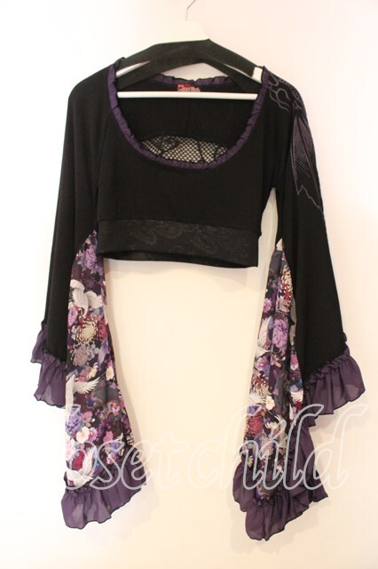 Qutie Frash / メッシュ着物袖トップス ブラック×パープル O-25-12-15-090-QU-TO-OW-OS [2100080000067964-O-25-12-15-090-QU-TO-OW-OS]