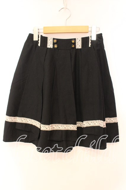 axes femme / ローズレースプリーツスカート M クロ×シロ O-25-12-16-027-AX-SK-IG-OS