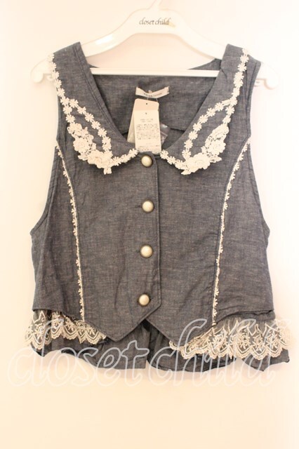 axes femme / フラワーレースベスト M ブルー O-25-12-16-057-AX-TO-IG-OS