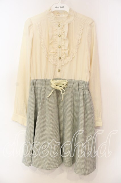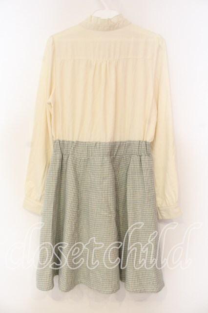 axes femme / 千鳥スカートドッキングワンピース アイボリー×サックス O-25-12-16-024-AX-OP-IG-OS