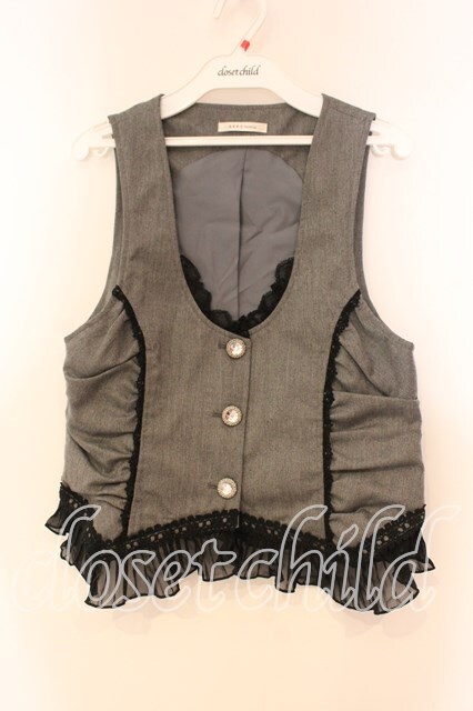 axes femme / パール付きベスト M グレー×クロ O-25-12-16-056-AX-TO-IG-OS