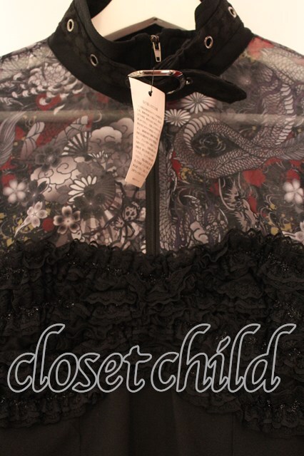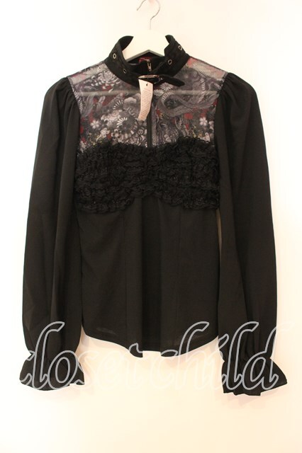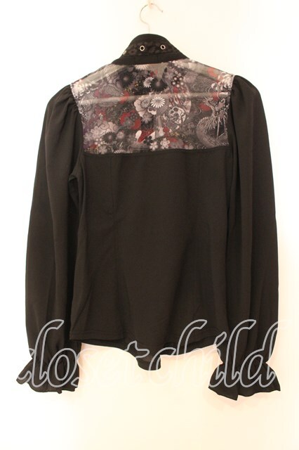 Qutie Frash / 和柄メッシュブラウス ブラック O-25-12-16-009-QU-BL-OW-OS [2100080000067983-O-25-12-16-009-QU-BL-OW-OS]