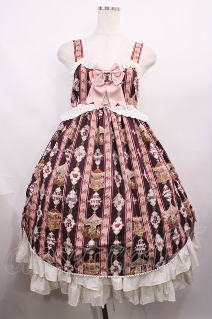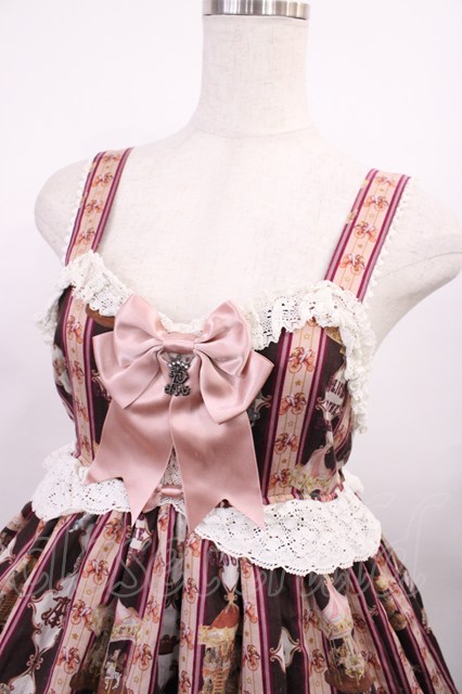 ALICE and the PIRATES / レジメンタルカルーセル柄ジャンパースカートII Free チャ×キナリレース×渋ピンクリボン H-25-12-22-1001-PA-OP-NS-ZH