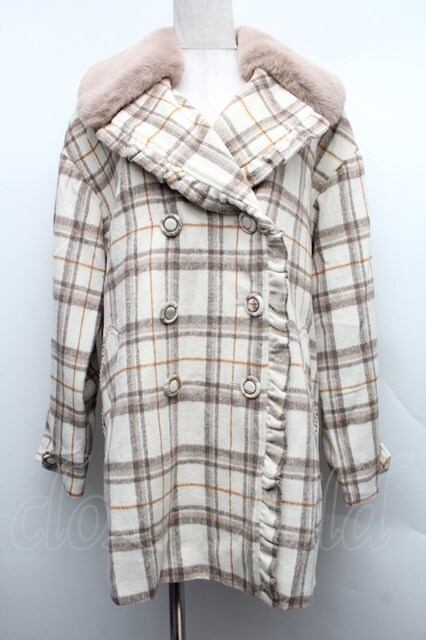axes femme POETIQUE / ファー襟チェックコート ベージュ S-25-12-15-048-AX-CO-HR-ZS [2100020000024425-S-25-12-15-048-AX-CO-HR-ZS]