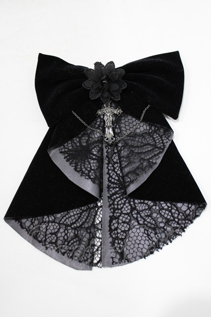 Chante / 十字架のゴシックリボンブローチ/ヘアクリップ ブラック H-25-12-22-069-PU-AC-KB-ZH [2100030000081335-H-25-12-22-069-PU-AC-KB-ZH]