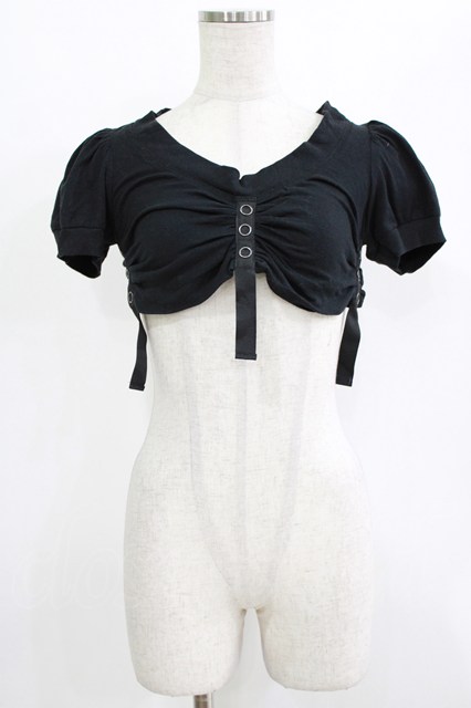 alice auaa / ギャザー&リブショートカットソー ブラック H-25-12-22-030-AA-TO-KB-ZH [2100030000081348-H-25-12-22-030-AA-TO-KB-ZH]