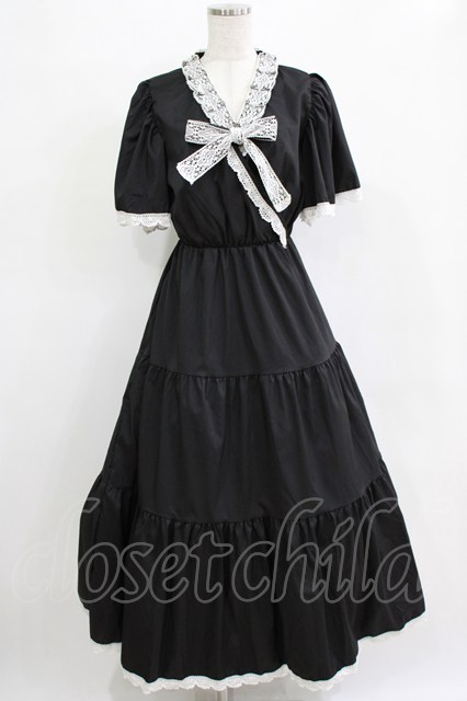 MR corset / ティアードロングワンピース ブラック×ホワイト H-25-12-22-007-PU-OP-KB-ZH [2100030000081331-H-25-12-22-007-PU-OP-KB-ZH]