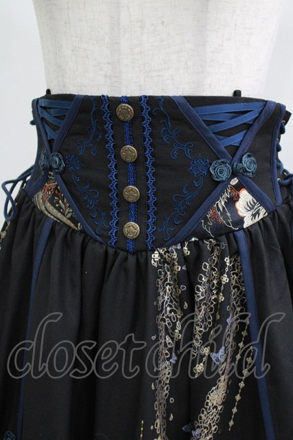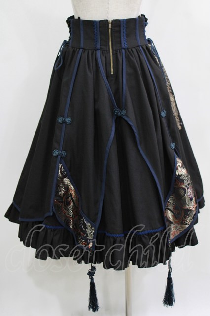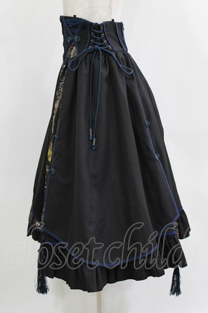 Ozz oneste / 朧藤スカート ブラック×ネイビー H-25-12-22-009-OO-SK-KB-ZH