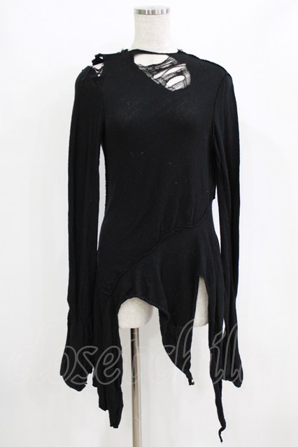alice auaa / コットンニットダメージカットソー ブラック H-25-12-22-031-AA-TO-KB-ZH